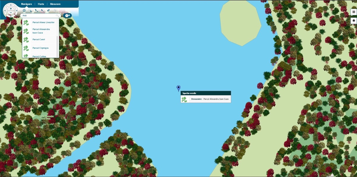 Într-un mod interactiv, utilizatorul poate găsi punctele de interes cu ajutorul instrumentelor de căutare și poate utiliza instrumentele de bază pentru un mediu spațial.